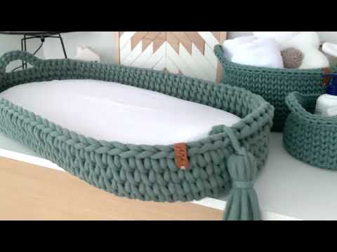 Not only is a crocheted changing basket functional, but it also adds a touch of charm and personality to the nursery, It is a beautiful and unique item. So, if you're looking for a practical and stylish way to change your baby's diaper, a crocheted changing basket is the way to go! The semicircular guides can be removed if necessary.