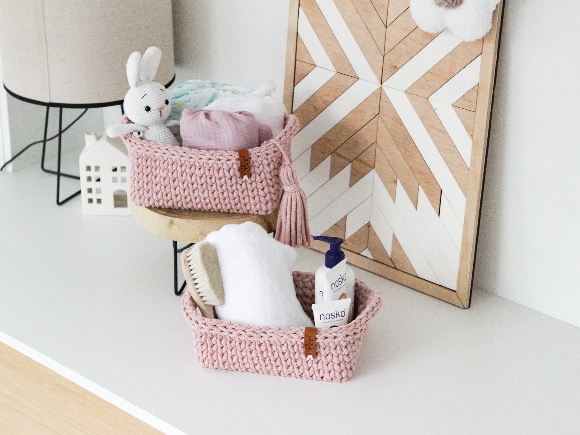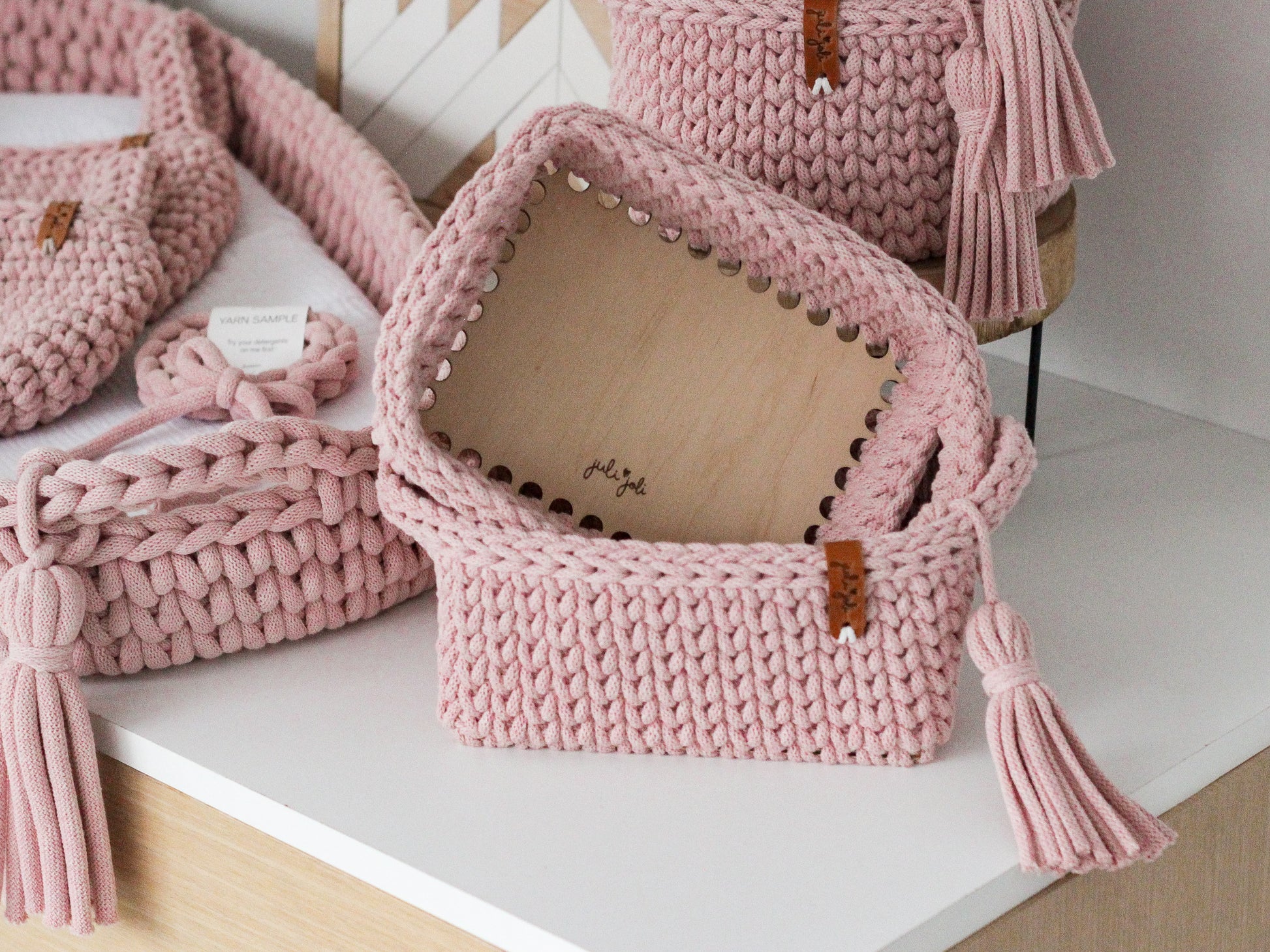 Crocheted Storage Baskets with nice and playful tassels - is a great, beautiful and very comfortable solution to arrange the changing table space. They will be helpful to storage diapers, nappies, baby care products and much more. Everything you need to take care of your baby is at your fingertips and beautifully organized.